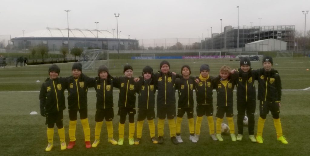 Einen nicht weniger „großen Rahmen“ gab es für unsere F1 beim Testspiel gegen die U8 von Schalke 04. Die Mannschaft samt Anhang reiste mit dem Bus nach Gelsenkirchen und genoss dieses Event von der ersten bis zur letzten Minute. In einem flotten Spiel, wo es hin und her ging, lieferten sich beide Teams im Schatten der Arena ein tolles Fußballspiel. Auf der Rückfahrt wurde im Bus dann ordentlich gefeiert, dieser Tag wird sicherlich nicht so schnell vergessen werden.