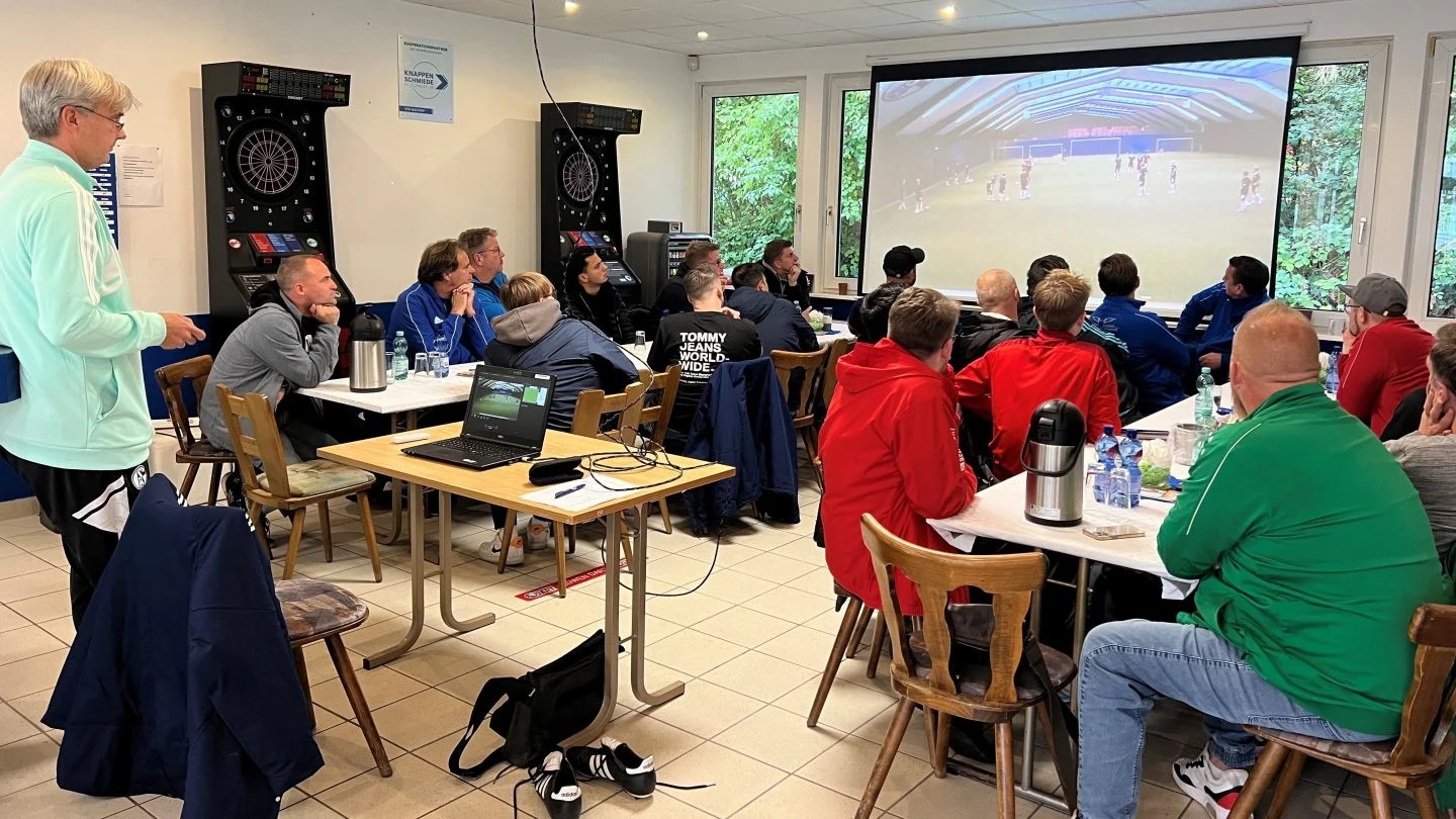 Nach mehr als zwei Jahren ohne Trainerfortbildung in Präsenz fand in der vergangenen Woche erstmalig wieder eine der begehrten Knappenschmiede-Schulungen statt. Zum Thema Technik/Stresstraining referierte U14-Chef-Trainer Jörg Behnert vor 30 Teilnehmern aus der Region beim Kooperationsverein VfB Waltrop.