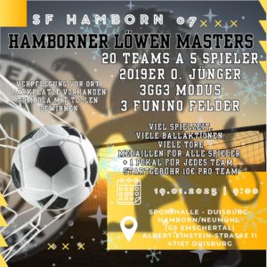 Am Sonntag, den 20. April 2025, lädt die Sportanlage Hamborn 07 zum großen Löwen Cup 2025 ein – dem Jugendfußball-Highlight für die Altersklassen U6, U8 und U9!