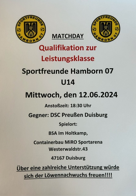Wir drücken weiter die Daumen und am Samstag geht es auch schon weiter mit einem Heimspiel gegen Preußen Duisburg.