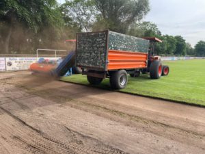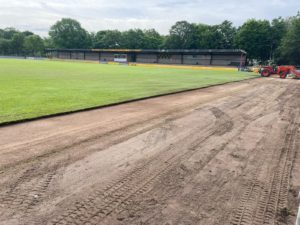 Nun sollen die weiteren Arbeiten zügig vorangetrieben werden, so dass der neue Rasen schnellstmöglich eingesät werden kann und zum Start der Oberliga Anfang August bespielbar ist.
